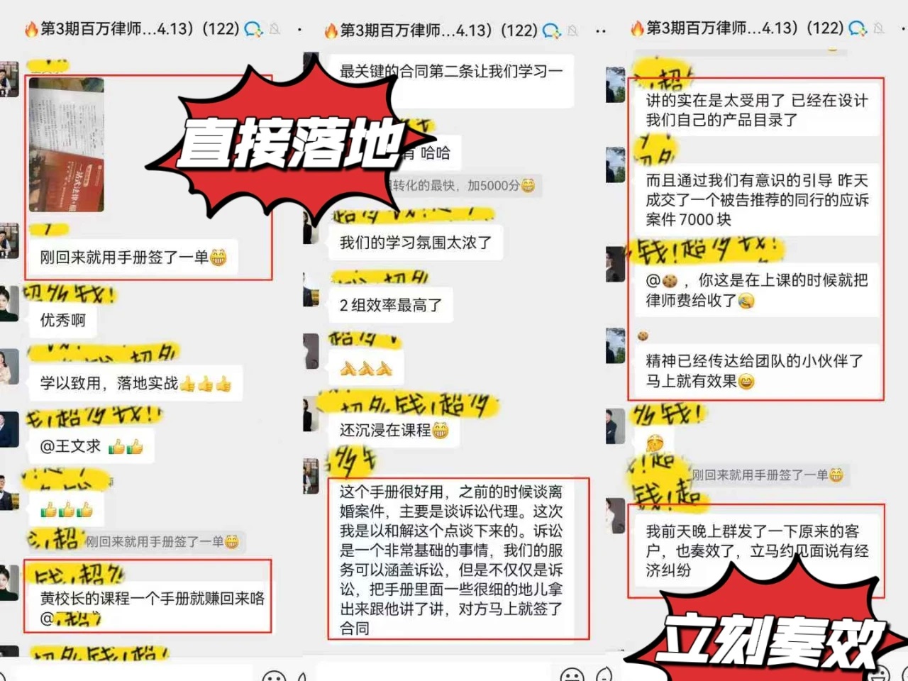 有同學迅速按《百萬律師教練班》中講到的客戶思維和產品手冊去做落地,當場成交!