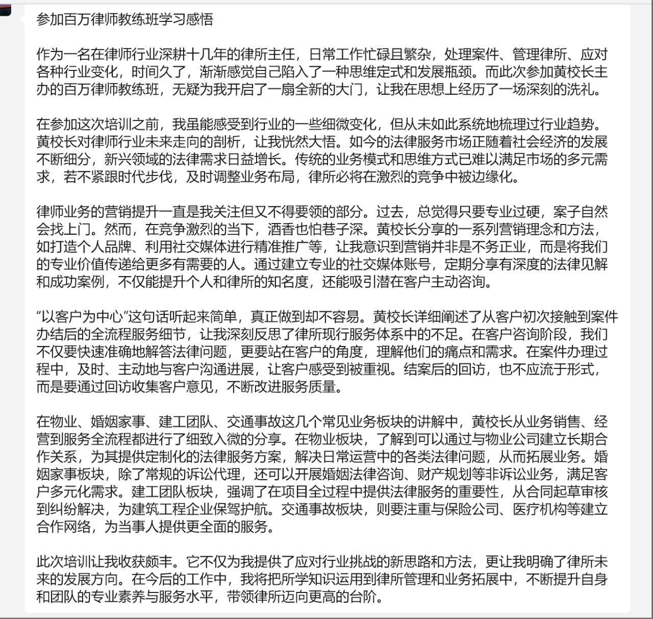 有同學條理清晰地總結和分享自己在《百萬律師教練班》的學習感悟,干貨滿滿!