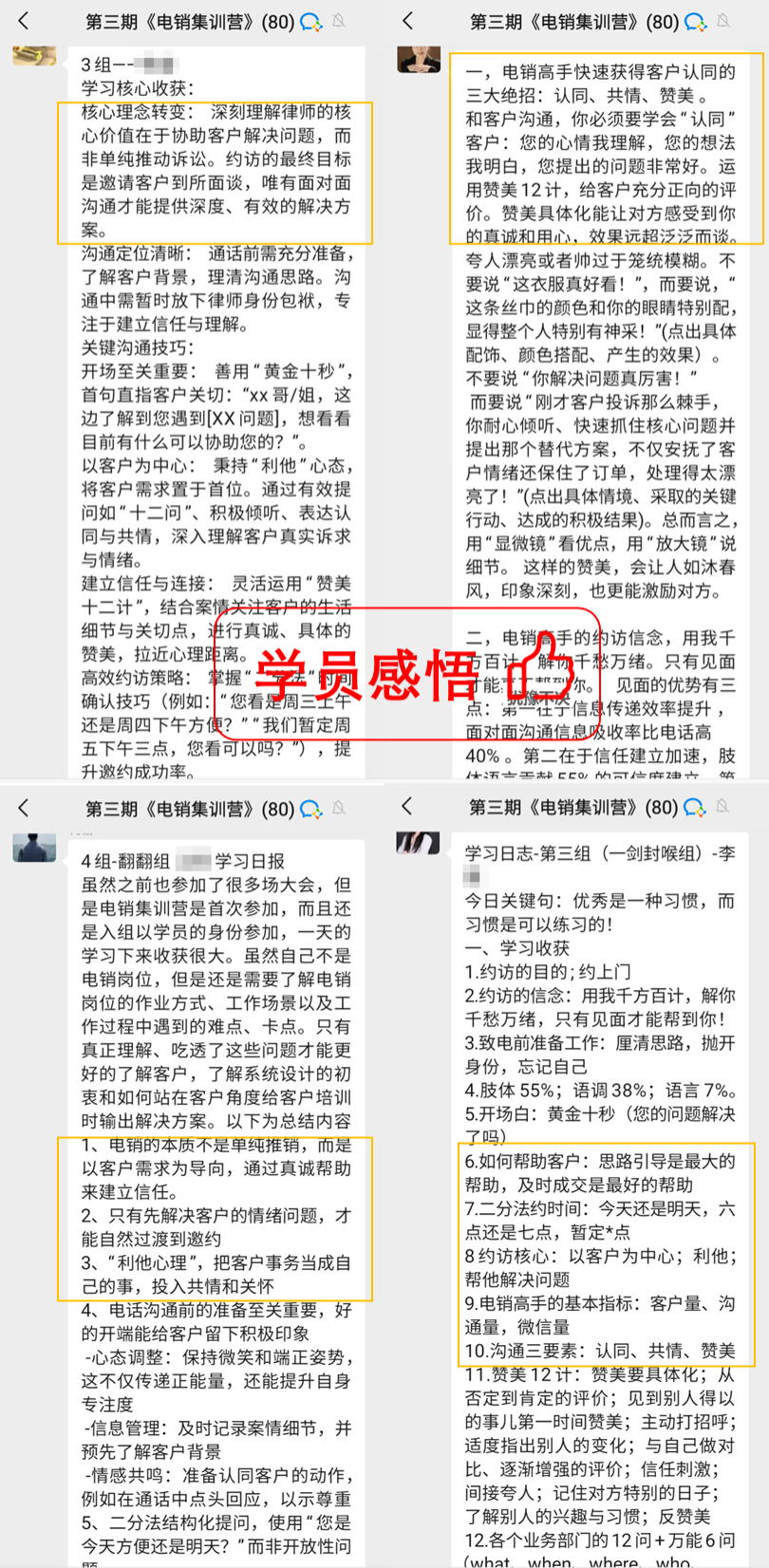 如果你也在做律所客戶的邀約工作,感覺邀約客戶吃力,報名參加大律學苑『電銷集訓營』,真正帶著你學,帶著你練,1位學員通過第一天的“贊美”作業就快速得到客戶的認可,實現簽單。如果你來跟著學,你也能夠快速提升,下一個邀約冠軍就是你!